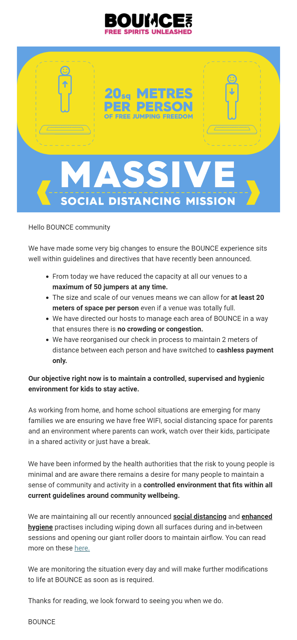 Bounce, Inc… Massive social distancing
